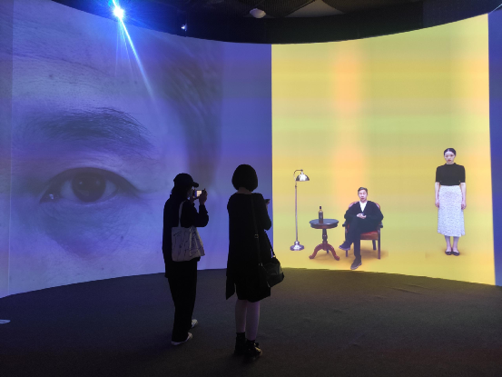 此次沉浸展的“劇情”由七個空間章節(jié)構(gòu)成,通過四個主角色娓娓道來:老人代表的是“癌癥、器官衰竭、老年癡呆”,女人代表的是“老人的亡妻,存活在老人的腦中”,男青年代表的是“科學(xué)家”,小女孩代表的是“老人的意識/記憶程序”。這其中,基因編輯、腦機接口等前沿科技都被揉進“劇情”。在光影變幻的空間里,觀眾第一次在觀展的過程中,有了一定的決定權(quán),重新組裝一遍新的內(nèi)容,從而帶來新的思考。