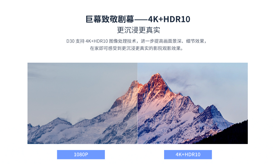 D30搭載光峰ALPD?激光顯示技術,色彩亮度得益于ALPD?技術達到了100%,具有優(yōu)秀的色彩和亮度水準,色域達到DCI-P3影院標準,亮度也達到了400nit,是為目前激光電視亮度前茅。本機更是搭載專為大屏激光電視打造的FengOS系統(tǒng),更進一步提升了觀影體驗。