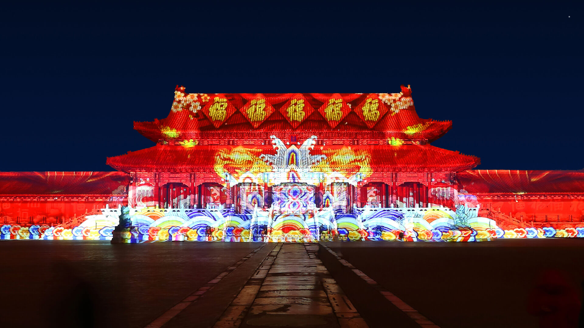 這夜的太和門在現代投影技術的加持下,顯得格外雄姿壯美。